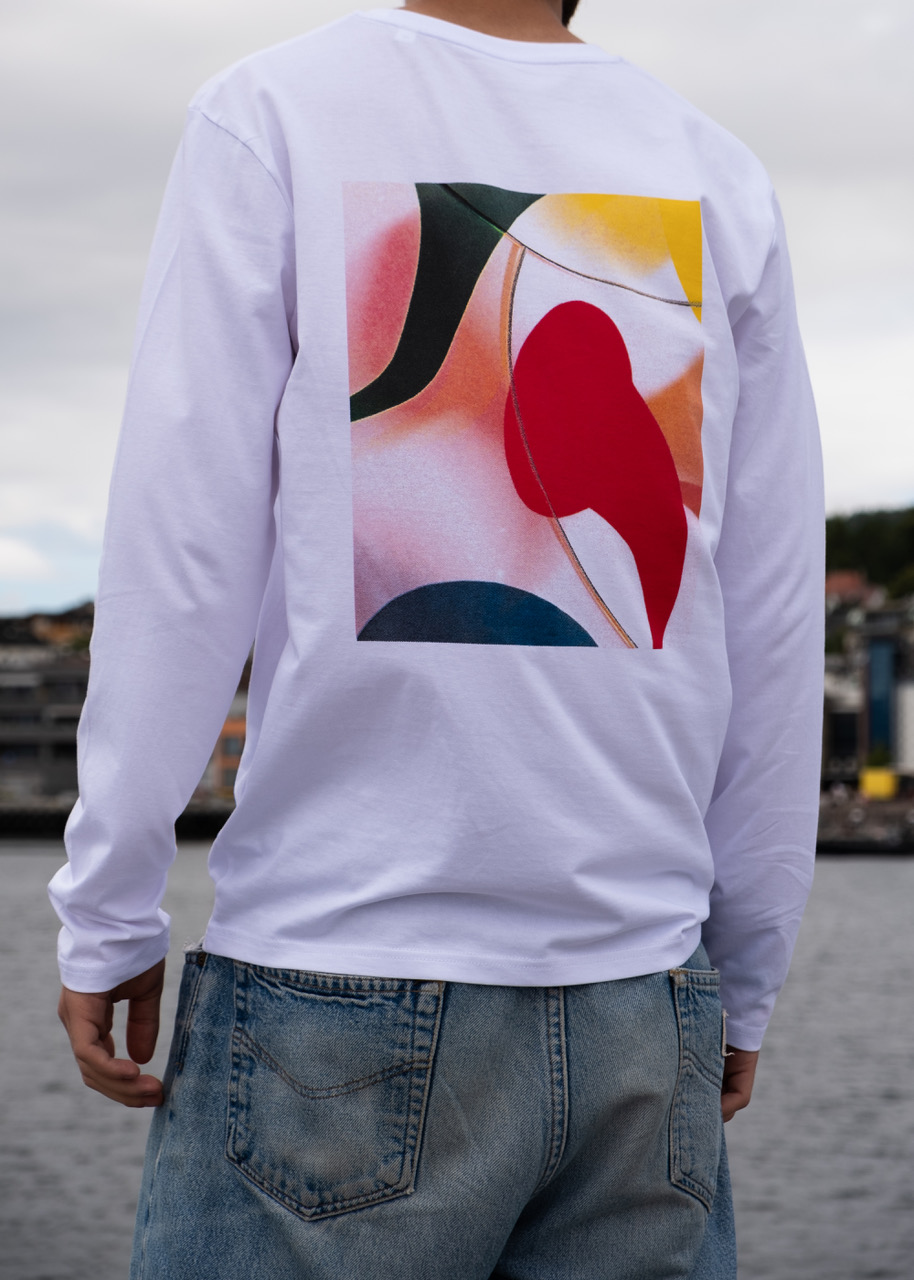 Langermet hvit unisex t-skjorte Moldejaz 2024. 100& organisk bomull, kvalitet 180 gram/m². Se bilder for størrelseskjema.